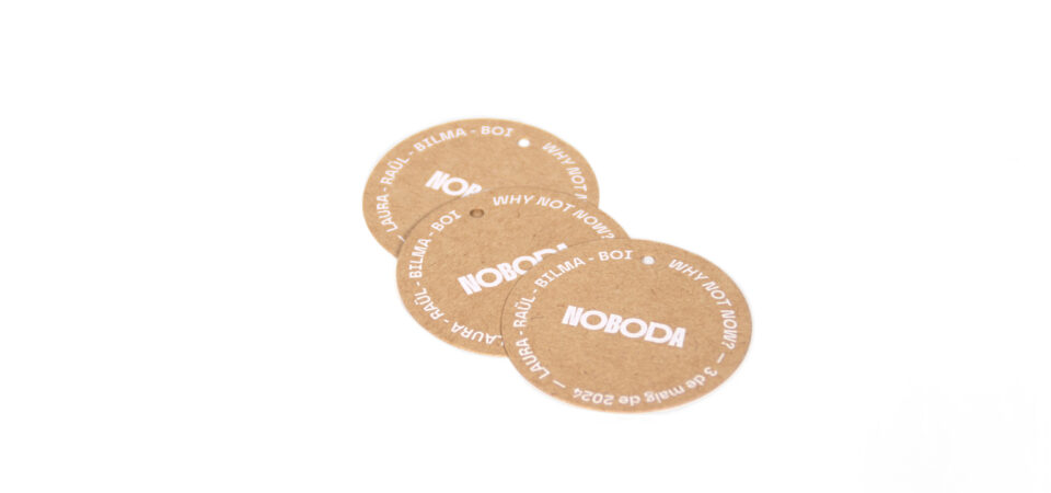 Impresión en tinta blanca sobre cartulina kraft.