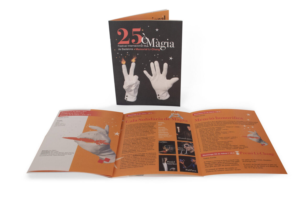 Plegado y grapado. Compuesto de 2 dípticos + cuadríptico interior