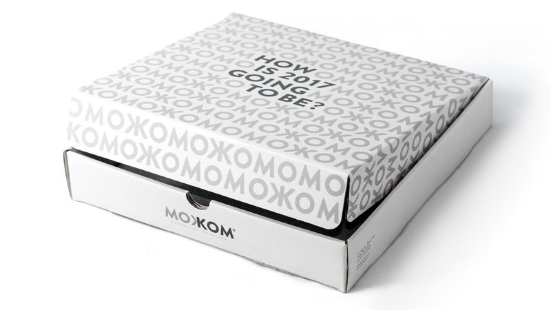 Mida 23 X 23 X 4 cm, encunyat tipus caixa pizza.